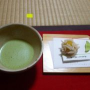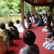 「沙羅双樹の寺」では、茶菓の接待のあと、沙羅双樹の庭を眺めな