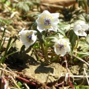 人が足を踏み入れない山裾の雑木林にある半影地に自生し、節分の頃から開花が始まるので「セツブンソウ」と、ついた名との様ですが、近年は開発や盗掘の為に自生地が激減し、環境省のレッドリストでは準絶滅危惧種に登録して保護されています。