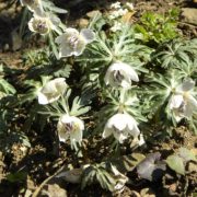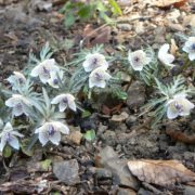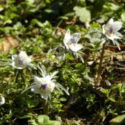 早春に塊茎から芽を伸ばし、白い花弁の様な萼片を5枚開き、白と薄紫の淡い色合いは実に可憐、太陽光に応じて花を開閉します。そして花の後、晩春には地上部をすべて枯らして、長い休眠に入ります。