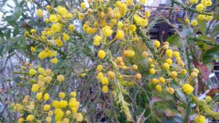 ヨーロッパでは、ミモザと並んで春を告げる花として人気がある「アカシアゴールデントップ」、本来は初春に咲く花ですが、風の当たらない陽だまりに植わっているので、一足先に花の香が漂い始めました。