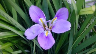 久々に通りがかると、突然に花が目に入りました、和名は「寒咲きアヤメ」。