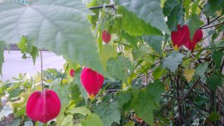 アオイ科の半つる性常緑小低木、ブラジル原産の熱帯花木なのに、比較的耐寒性があり、寒さ厳しいこの時期でも、まだ花を付けており、西日本では屋外で冬越しも可能です。