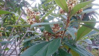 マンションの公園茂みに、小さなビワの木が芽生えていたのが年数を経て、遂に今年初めて花をつけました。こんなに目立たない地味な花ですが、遠く離れた場所まで、強く芳香が漂い、それは甘く妖艶です。