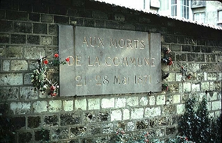 もう一つの想い出は、耳にしたパリ・コミューン最後の舞台がこの墓地の一角だったことです。1871年、わずか2か月の社会主義(あるいは共産主義)政府の最後の銃撃戦の後、残った数十名が一角の壁を背にして銃殺されたそうです。壁には銃の弾痕が補修されたあとがしっかり残っていて、その臨場感に正直私は心を打たれた思いをしました。