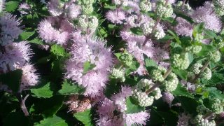 珍しい草姿で、お気に入りの草花です、昨年は9月中旬過ぎに玄関先に並べて呉れていた同じ旧家で、今年はそれより少し遅れて並びました。串団子の様に蕾がつく愛嬌のある、この草花はシソ科の多年草です。
