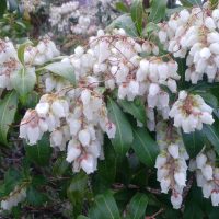白い小さな壺形の花が鈴なりに密集して咲くアセビの花です。万葉集にも多数詠まれ、古代から親しまれた春の花代表のひとつです。日本原産で(中国東部の一部や台湾にも自生)本州以南の山野に広く自生しているツツジ科の常緑低木です。 …