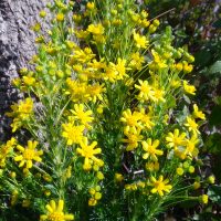 南アフリカ沿岸地域の日当たり良い場所に、自生しているキク科の常緑植物で、外見は草の様に見えますが身長ぐらいの大きさに育つ灌木です。100種弱有ると言われるユリオプス属の一つで、バージネウスと言う品種です。 早春の花が少 …