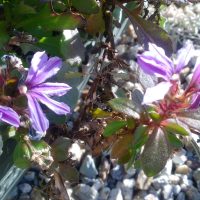 オーストラリア南東部が原産地の、クサトベラ科の多年草「ブルーファンフラワー」です。 植物の名前は、扇状に広がる花の形に由来、花弁が偏って存在する奇形の花で、日本名は花弁の姿から付けられた「末広草」との事、茎は地を這う様に …