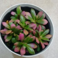 花好きのお宅の花壇の棚に並べているのを、見せて頂きました。 南アフリカ原産の多肉植物で、アナカンプセロス科の植物で、日本では「桜吹雪」と外見から受けるイメージから名付けられて流通しています。 珍しい紅葉斑の品種で、寒さ厳 …