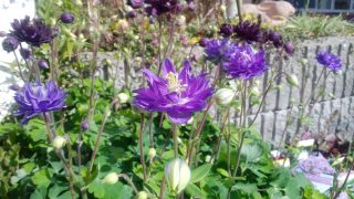 ユニークな花姿で上向きに咲くこの花は、クレメンタイン・ブルーと呼ばれるものです。 和名では、「西洋オダマキ」と呼ばれ、花が終わった後、株元まで切り戻すと、宿根草なので、翌年もまた、新芽を伸ばして花を楽しめます。
