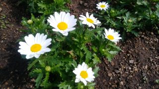 原産地は北アフリカのアルジェリア近辺のキク科植物、今の時期から初夏の頃に掛けて、次々とマーガレットによく似た径3cm位の花をビッシリつけ、育てやすく手間のかからない草花で、こぼれ種でも芽吹いて良く増えます。