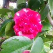 最初の写真の種は、別名で「月光・がっこう」と呼ばれ、濃紅色の一重咲きの花弁の中に、純白の花芯が印象的な珍しい品種で、江戸時代初期から知られる古典椿の代表的な品種です。