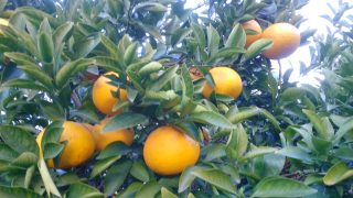 貸農園や庭木に植栽されている八朔が、寒気の強まりで色づき、収穫の時期を迎えています。