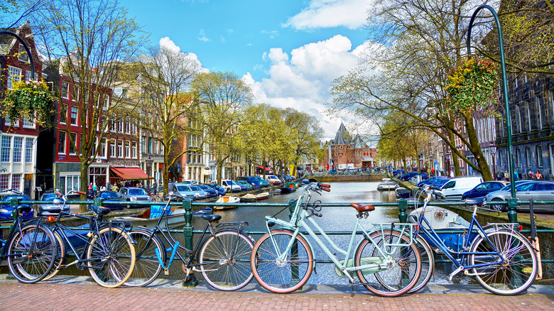 街角の街灯の支柱や橋の手摺などに太い鎖のついた頑丈な錠前で結び付けられている自転車。これはオランダでよく目にする光景です。その自転車といえば骨太で作りだけは非常にしっかりしているが、よく見るとスタンドもブレーキらしきものも付いてない至って簡単なもの。自転車としての最低限必要な部品だけという代物です。スタンドというものがなく自立できないからこそ、こうやって何かにもたせ掛けたりして止めざるを得ないのです。