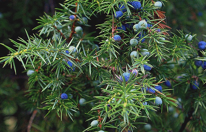 ヒノキ科の針葉樹の実「ジュニパーベリー」(上の写真)などで香りをつけているとのことですが、「など」の方に重点がある香りなのです。ずばり、アニスの香りです。