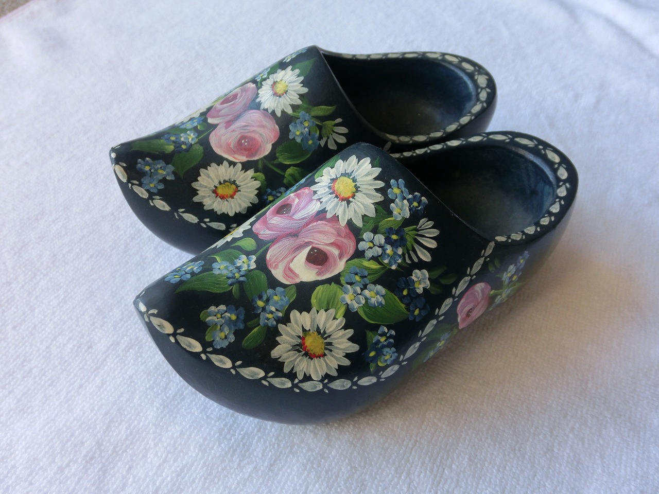 一度あの大きな木靴を履いて器用に自転車に乗っている老人を見かけたことがあります。実際、木靴をよく目にするのは、インテリアとして壁にかけて花を生けたり、小物入れに使ったりが多く、たまには玄関ドアにかけてあったりします。いずれも綺麗にデコレーションされたものです。そう言えば、うちの女房殿も木地の小さい木靴を買ってきて、アッセンデルフトというオランダのトールペインティングで絵付けをしていました。出来上がりはどうでしょうか。