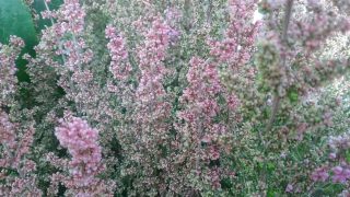 写真の種は「淡雪エリカ」のなかの桃花品種で、南アフリカ原産の常緑性の低木、秋の深まりに合わせて、枝先の先端から徐々にピンクに染まって、小さな鈴の様な、濃桃色の花を隙間なく、びっしり付けて、それがまるで淡雪が降り積もったかの様に見えてきます。