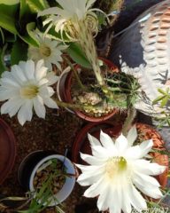 9月17日朝 珍しく白い花が4輪も咲きました。昼前にはしぼみ、儚い生命でした。しおれた花に「ありがとう」とだけ言いました。