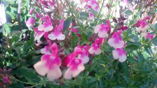 シソ科サルビア属の常緑多年草ですが、サルビアよりも、チェリーセージに近い仲間で、葉には爽やかな芳香が有ります。