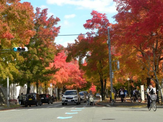 朝から青空が拡がり気温も上昇、暖かい陽射しに誘われて、久し振りにサイクリングに出掛けました。 毎年数回訪れる吹田市の北部にあるこの場所は、「三色彩道」と呼ばれ、木の葉の色、赤、黄、緑の三色彩が季節の深まりの推移に伴い微妙に変化する人気のスポットです。
