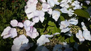 蕾が出来てから開花迄時間がかかったのと同じく、咲いてからも通常のアジサイとは異なり、随分長持ちしているのに驚きました、開花初めから一カ月以上も咲き続けているのには驚きです。一般的なガクアジサイに比べ、ガクの部分が随分大きく育ち、薄っすらと水色や桃色を帯びていました。