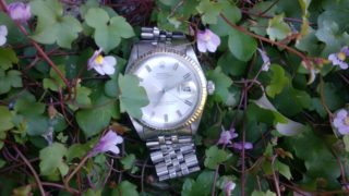 日課の早朝ウォーキングからの帰路で目にして、余りにも小さい花なので、サイズ比較の為に腕時計を入れて撮影しました。 この植物はオオバコ科、地中海沿岸地域が原産地で、日本には大正時代にロックガーデンの装飾に導入され、それが野生化して繁殖域を拡大、今は野生化した帰化植物として全国至る所で見られます。
