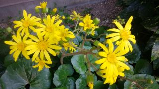 フキ(蕗)と葉の形が似ているので「ツワブキ」との名前が付いていますが、実際はキク科ツワブキ属に属する常緑多年草で、日本で昔から自生していた植物で、福島県以南に広く分布し、朝鮮半島から中国東南部にも分布が見られます、また若い葉柄は食用になります。因みに蕗はキク科フキ属です。