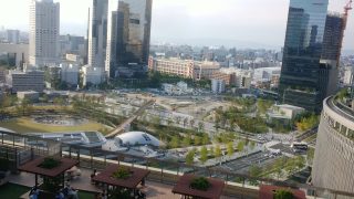 「うめきたプロジェクト」とは、大阪最後の一等地、JR大阪駅の北の貨物施設跡を本格的に開発するもので、写真右側の半分切れている部分には「グランフロント大阪」として2013年に先行開発され、今や梅田の人気ス