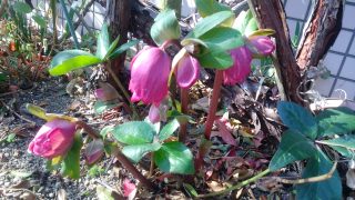 正しくはキンポウゲ科の多年草で「ヘレボルス」、ヘレボルスとはラテン語で毒を意味し、全草が有毒で扱いに注意が必要です。 茎が無く、根茎から葉柄と花柄が別々に伸びて、常緑性で耐寒性に強く、日陰でも育って冬枯れの庭を彩ります。花に見える部分は、いわゆる花ではなく、「がく片」で実際の花はその内側に有ります。