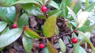 縁起木として正月に飾られる千両・万両は、鉢植えや庭木として目にする機会は多いが、郷里でやや薄暗い林の林縁で群生していた「十両」は、当地では目にする機会がなく、やっと神社の茂みの中で見つけました。