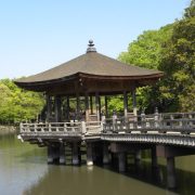 DSCN9233→浮見堂、高畑町の志賀直哉旧宅へのルートにある鷺池に浮かぶ檜皮葺のお堂。