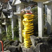 3→境内にある郵便ポスト、これも寅模様。
