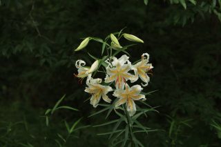 これは日本特産のユリで、白い花姿が際立ち、強い芳香を放っています。地域に依っては、それぞれ色々な呼び名がついていますが、このユリの花言葉は「荘厳」との