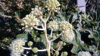 天狗の団扇として知られる「八手―やつで」の八は、数が多いと言う意味で、必ずしも葉が8裂に、切れ込んでいる訳ではありません。 日本の固有種でウコギ科の常緑低木、日陰でも良く育つので、庭木として植えられる事が多く、魔除け 鬼門除けの意味も有るそうです。